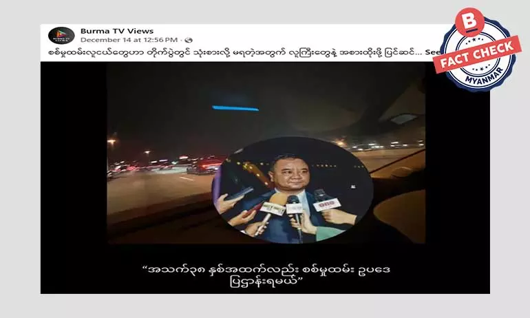ဒီအကြောင်းအရာကို သတင်းအမှားတွေ ဆက်တိုက်ဖြန့်ဝေနေတဲ့ Burma TV Views ဆိုတဲ့ ဖေစ့်ဘွတ်ပေချ့်မှာ ဒီဇင်ဘာလ ၁၄ ရက်နေ့မှာ စတင်ဖြန့်ဝေခဲ့တာ ဖြစ်ပြီး ထပ်ဆင့်ဖြန့်ဝေမှု အများအပြားလည်း ရှိနေပါတယ်။