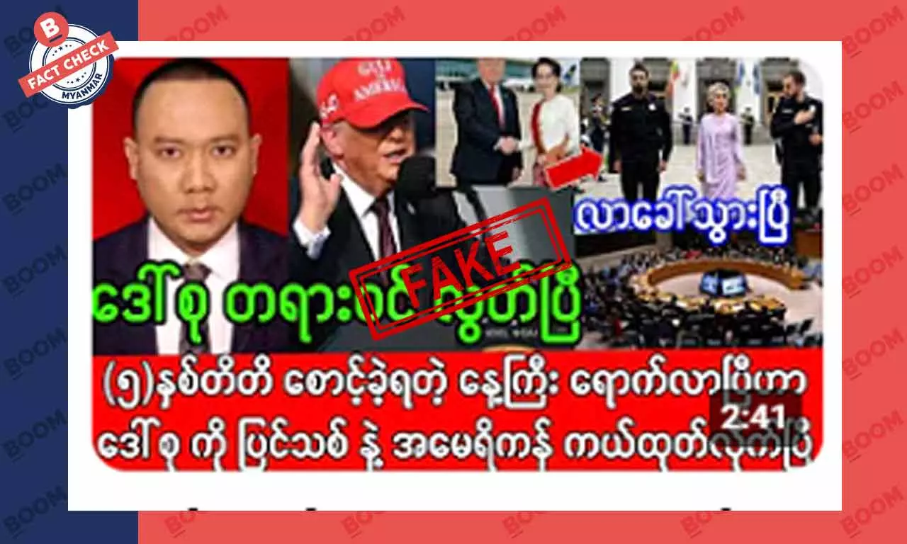 အဆိုပါ သတင်းအတုကို YouTube ချန်နယ်တစ်ခုက မတ်လ ၁၀ ရက်နေ့မှာ ဖြန့်ထားတာ ဖြစ်ပြီး သတင်းအမှားကို ဖြန့်ဝေရာမှာ 3 မိနစ်ကျော် ကြာမြင့်တဲ့ Video တစ်ပုဒ်နဲ့ တွဲတင်ထားတာ ဖြစ်ပါတယ်။ ဒီ Video ရဲ့ နောက်ခံမှာ ဒေါ်အောင်ဆန်းစုကြည်ရဲ့ ဓါတ်ပုံရယ်၊ US သမ္မတ ဒေါ်နယ်ထရမ့် ရဲ့ဓါတ်ပုံရယ်၊ သတင်းကြေညာသူတစ်ဦး ပါဝင်တဲ့ ဓါတ်ပုံတွေကို ဖော်ပြထားပြီး ဓါတ်ပုံပေါ်မှာ “ဒေါ်စု တရားဝင်လွတ်ပြီ။ ငါးနှစ်တိတိ စောင့်ရတဲ့နေ့ကြီး ရောက်လာပြီ။ ဒေါ်စုကို အမေရိကန်နဲ့ ပြင်သစ်က ကယ်ထုတ်လိုက်ပြီ” (မူရင်း ရေးသားထားသည့်အတိုင်း) လို့ ရေးသားထားပါတယ်။