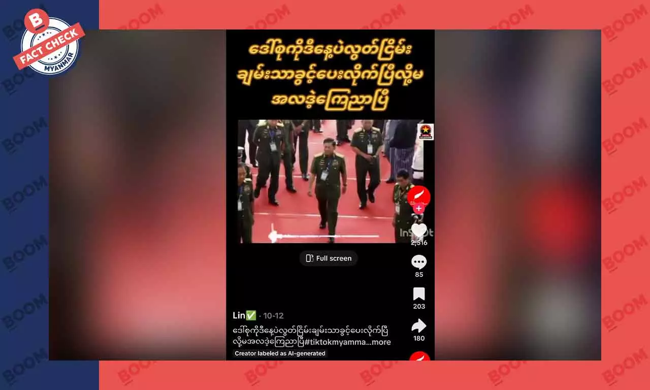 အဆိုပါ သတင်းအတုကို TikTok အကောင့်တစ်ခုက ဖြန့်ထားတာ ဖြစ်ပြီး သတင်းအမှားကို ဖြန့်ဝေရာမှာ ၂ မိနစ်ကျော် ကြာမြင့်တဲ့ Video တစ်ပုဒ်နဲ့ တွဲတင်ထားတာ ဖြစ်ပါတယ်။ ဒီ Video ရဲ့ နောက်ခံမှာ စစ်ခေါင်းဆောင် မင်းအောင်လှိုင်ပါဝင်တဲ့ ဓါတ်ပုံတွေနဲ့ ဒေါ်အောင်ဆန်းစုကြည် ပါဝင်တဲ့ ဓါတ်ပုံတွေကို သုံးထားပြီး Video ပေါ်မှာ “ဒေါ်စုကို ဒီနေ့ပဲ လွတ်ငြိမ်းချမ်းသာခွင့် ပေးလိုက်ပြီလို့ မအလ ကြေညာလိုက်ပြီ” (မူရင်း ရေးသားထားသည့်အတိုင်း) လို့ ရေးသားထားပါတယ်။