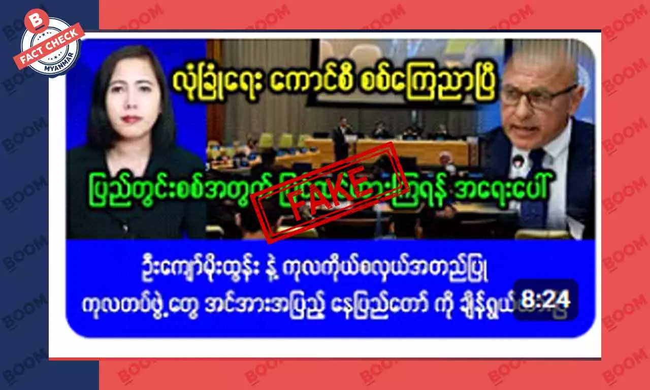UN က စစ်ကောင်စီကို စစ်ကြေညာတယ်ဆိုတဲ့ အကြောင်းအရာကို Boom Myanmar က အချက်အလက် စစ်ဆေးကြည့်တဲ့အခါ ဝင်ရောက်ကြည့်ရှုသူ များအောင် လုပ်ကြံရေးသားထားတဲ့ သတင်းအတုဖြစ်တာကို တွေ့ရပါတယ်။