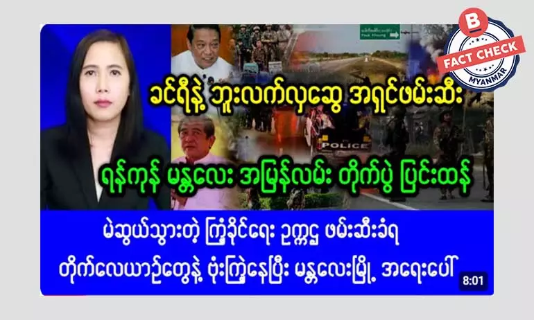 ဦးခင်ရီနဲ့ ဘူးလက်လှဆွေ ကို အရှင်ဖမ်းမိတယ်ဆိုတဲ့ အကြောင်းအရာကို Boom Myanmar က အချက် အလက် စစ်ဆေး ကြည့်တဲ့အခါ လုပ်ကြံဖန်တီးထားတဲ့ သတင်းအတု ဖြစ်တာကို တွေ့ရပါတယ်။