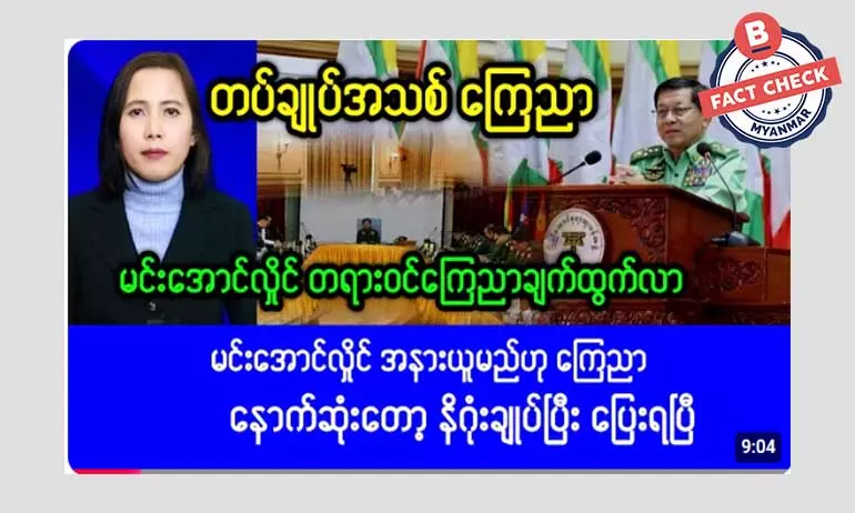 စစ်ခေါင်းဆောင် မင်းအောင်လှိုင်က အနားယူတော့မယ်လို့ ဆိုကာ စစ်ကော်မရှင်က ကာကွယ်ရေးဦးစီးချုပ် ကြေညာချက် ထုတ်ပြန်တယ်ဆိုပြီး ရေးသားဖြန့်ဝေနေတာတွေဟာ သတင်းအမှားတွေပဲ ဖြစ်ပါတယ်။