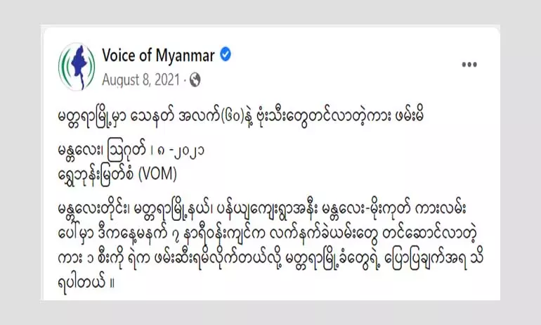 ဒီသတင်းကို စစ်တပ်ထောက်ခံတဲ့ ဖေစ့်ဘွတ်အကောင့်နဲ့ ပေချ့်တွေမှာ ဧပြီ ၈ ရက်နေ့က စတင်ဖြန့်ဝေနေတာဖြစ်ပါတယ်။