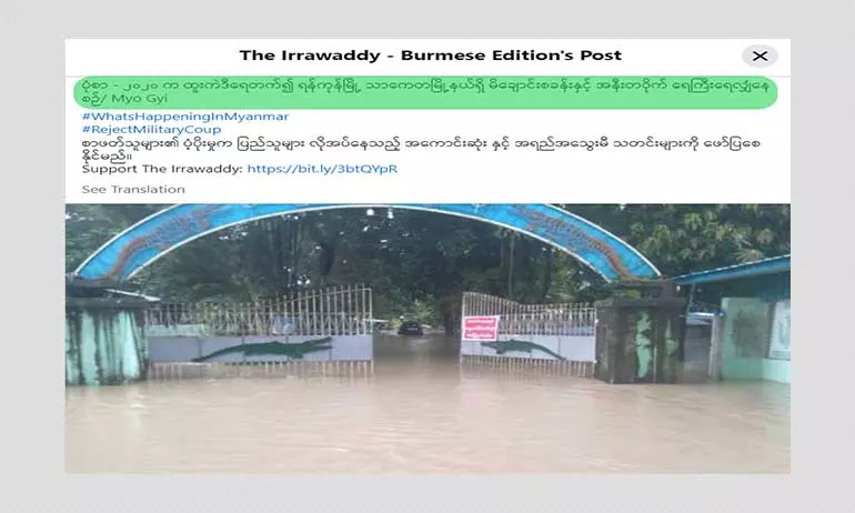ဖြန့်ဝေနေတာတွေဟာ ဧရာဝတီသတင်းဌာနက ဖော်ပြထားတဲ့ ပုံဟောင်းတွေကို ရယူအသုံးပြုပြီး လက်ရှိဖြစ်ပွားနေတဲ့ ရေကြီးရေလျှံတဲ့ ဖြစ်စဉ်တွေနဲ့ ရောကာ သတင်းအမှားတွေ ဖြန့်ဝေနေတာသာ ဖြစ်ပါတယ်။